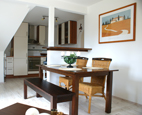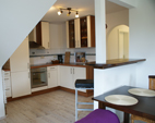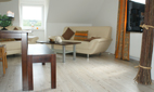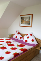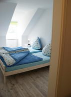 Im Inneren der Ferienwohnung sorgen warme Farben für eine freundliche Atmosphäre, die Einrichtung ist zeitlos bis modern. Die beiden separaten Schlafzimmer sind mit einem Landhaus Kieferndoppelbett sowie je zwei vanille farbigen Einzelbetten ausgestattet.